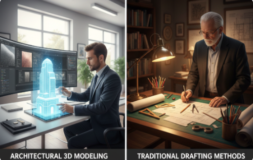 The architectural world is at a design crossroads between two design periods, which separate traditional drafting from modern architectural 3D modeling.